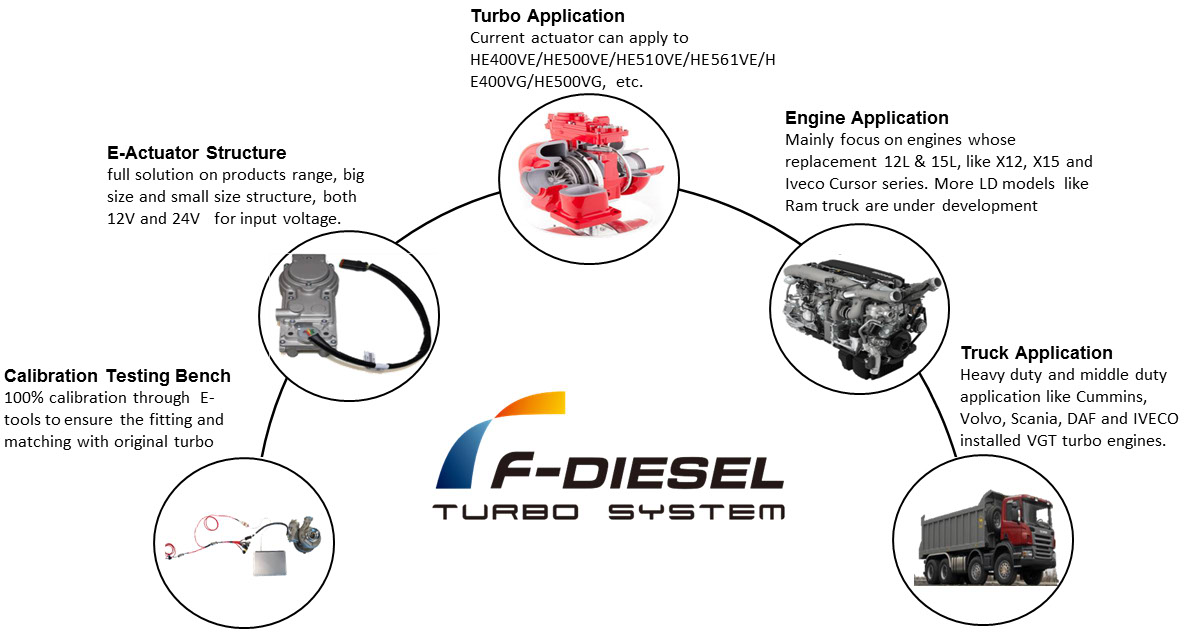 F-Diesel provide the solution to turbocharger actuator & components for both diesel and gasoline application.