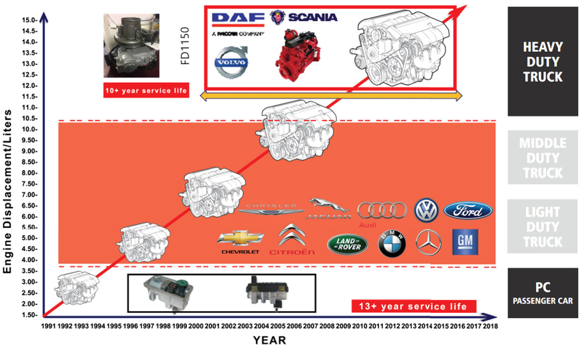 Heavy duty and middle duty application like Cummins, Volvo, Scania, DAF and IVECO installed VGT turbo engines.