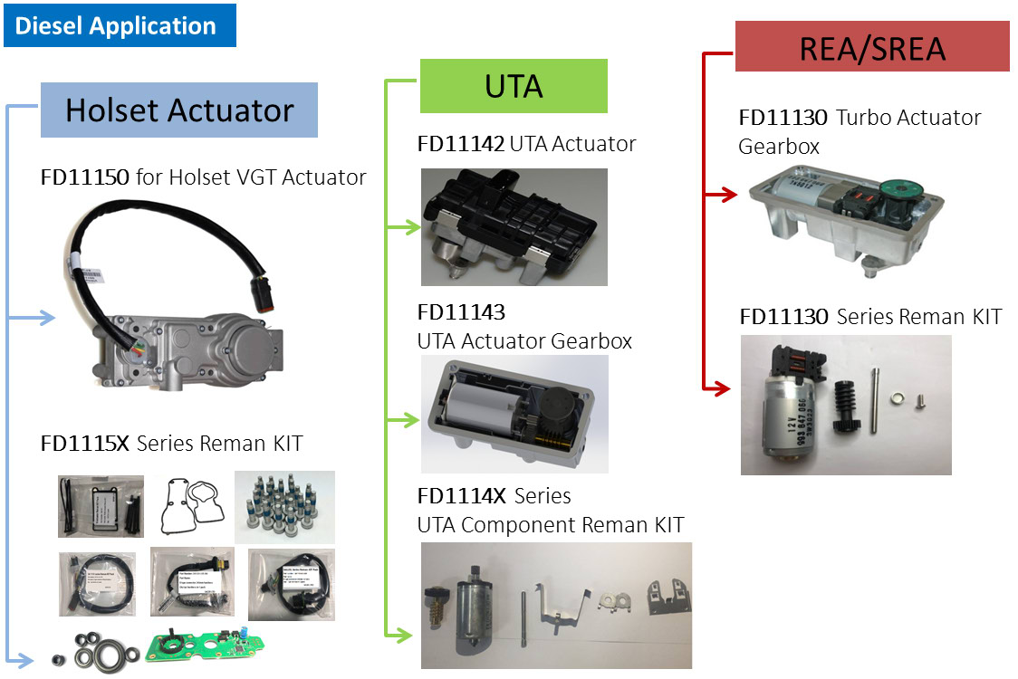 F-Diesel can provide the solution to turbocharger actuator & components for both diesel and gasoline application.